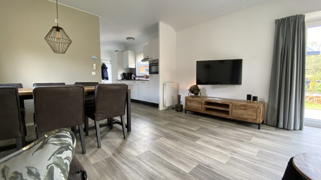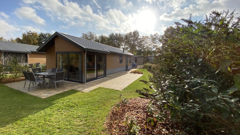 Dit nieuwe, vrijstaande chalet is gelijkvloers en geschikt voor 4 personen.
